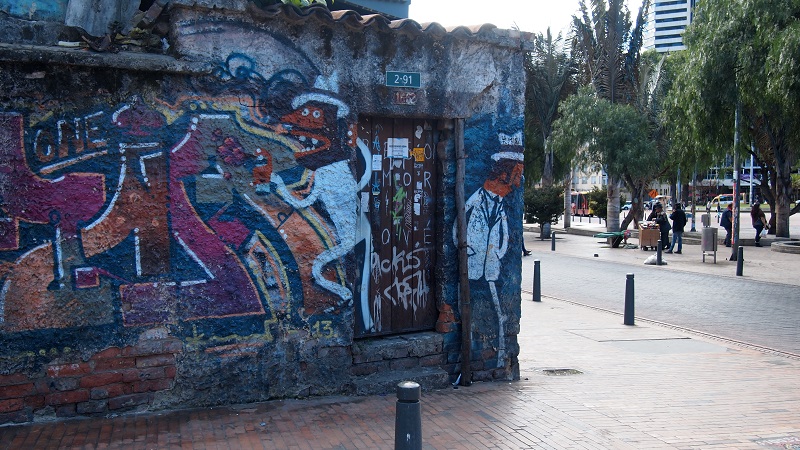 In den folgenden Tagen blieb es so leer und das machte es etwas schwierig den Warnungen zu glauben, wie gefährlich es in Bogota doch sei. Mag ja sein, dass es Viertel gibt, in die sich selbst so mancher Kolumbianer nicht traut. Wir jedenfalls fühlten uns sicher. Durchliefen einfach die Straßen, entdeckten dabei gelegentlich eine Sehenswürdigkeit und ließen uns treiben. Bogota ist bis auf die Altstadt keine wirklich schöne Stadt. Es dominiert die graue Betonbauweise, doch gleichzeitig ist Bogota übersät mit Graffiti und ihr könnt euch vorstellen, dass meine Kamera vor Verzückung nicht mehr weggelegt wurde.
